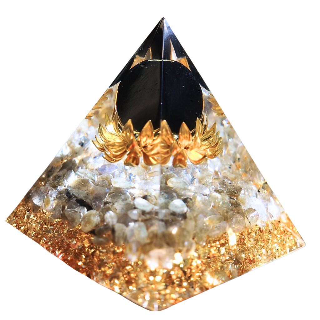 In orgonite designs, the combination of resin, metal, and crystal is traditionally believed to help transform dense energy into a more harmonious energetic flow. The pyramid form then helps focus and amplify that energy upward through the apex.